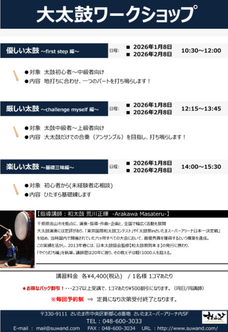 【大太鼓WS】 ~優しい太鼓編/厳しい太鼓編/楽しい太鼓編~